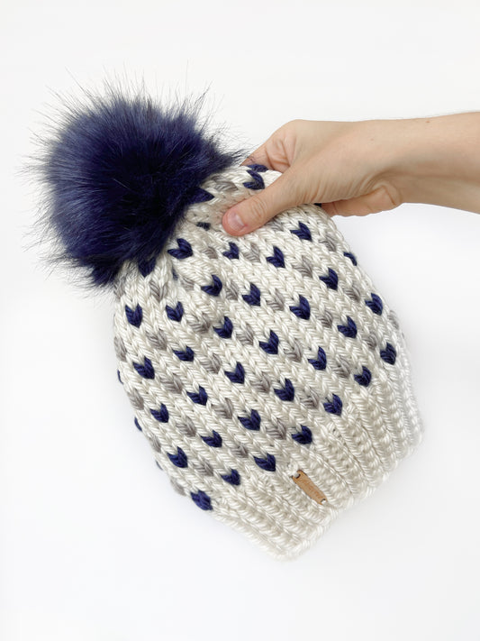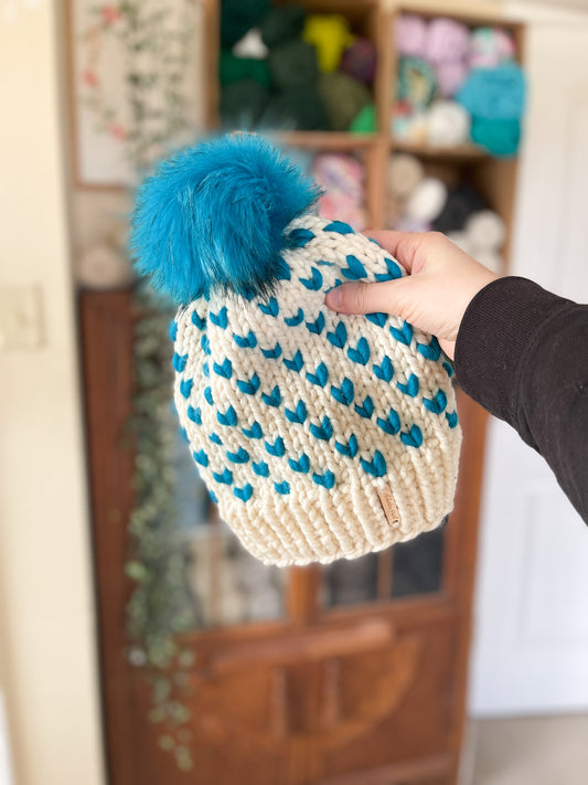 Wild Hearts Beanie // Cream and Blue Lagoon