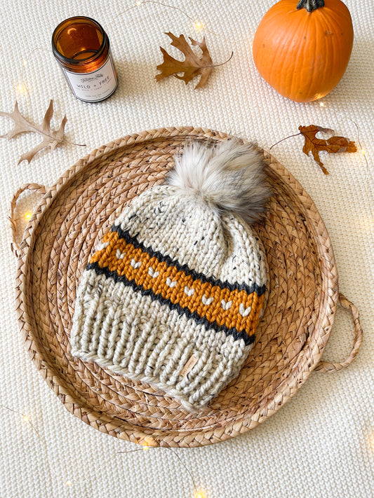 Hearts and Stripes Beanie // Oatmeal, Gold and Charcoal