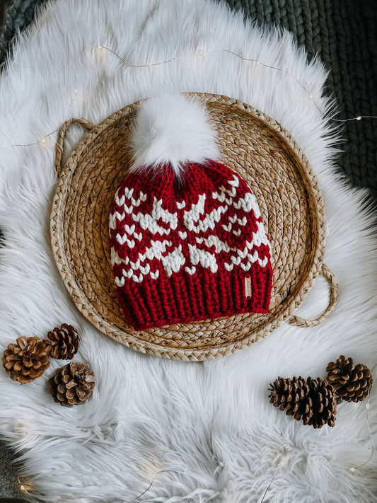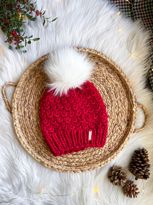 Bamboo Beanie // Red, Merino Wool - Pick your pom
