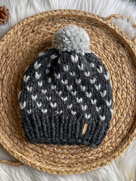 Wild Hearts Beanie // Charcoal and Grey Tweed