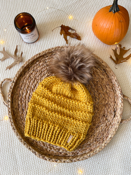 Slone Beanie // Mustard - Wool free - Pick your pom