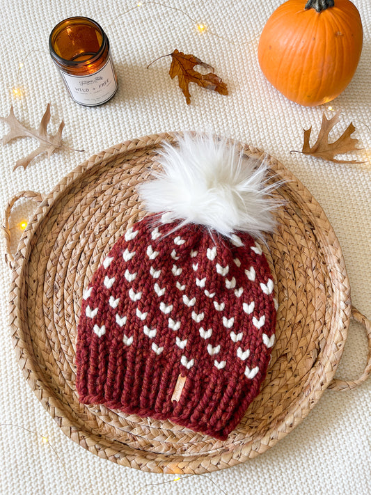 Wild Hearts Beanie // Maroon and Cream - Pick your pom