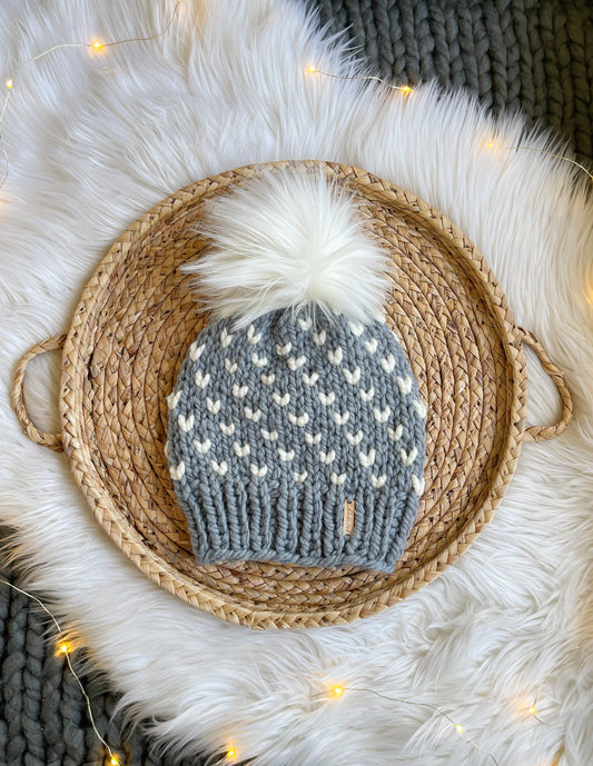 Wild Hearts Beanie // Slate and Cream - Pick your pom