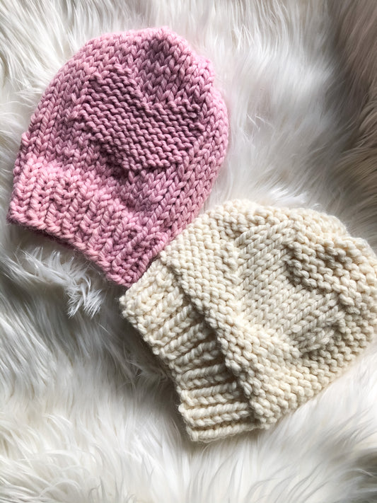 KNITTING PATTERN: Sweet & Simple Beanie // Valentine's Day // Beginner Knitter // Reversible Pattern // Heart Hat // Heart Beanie
